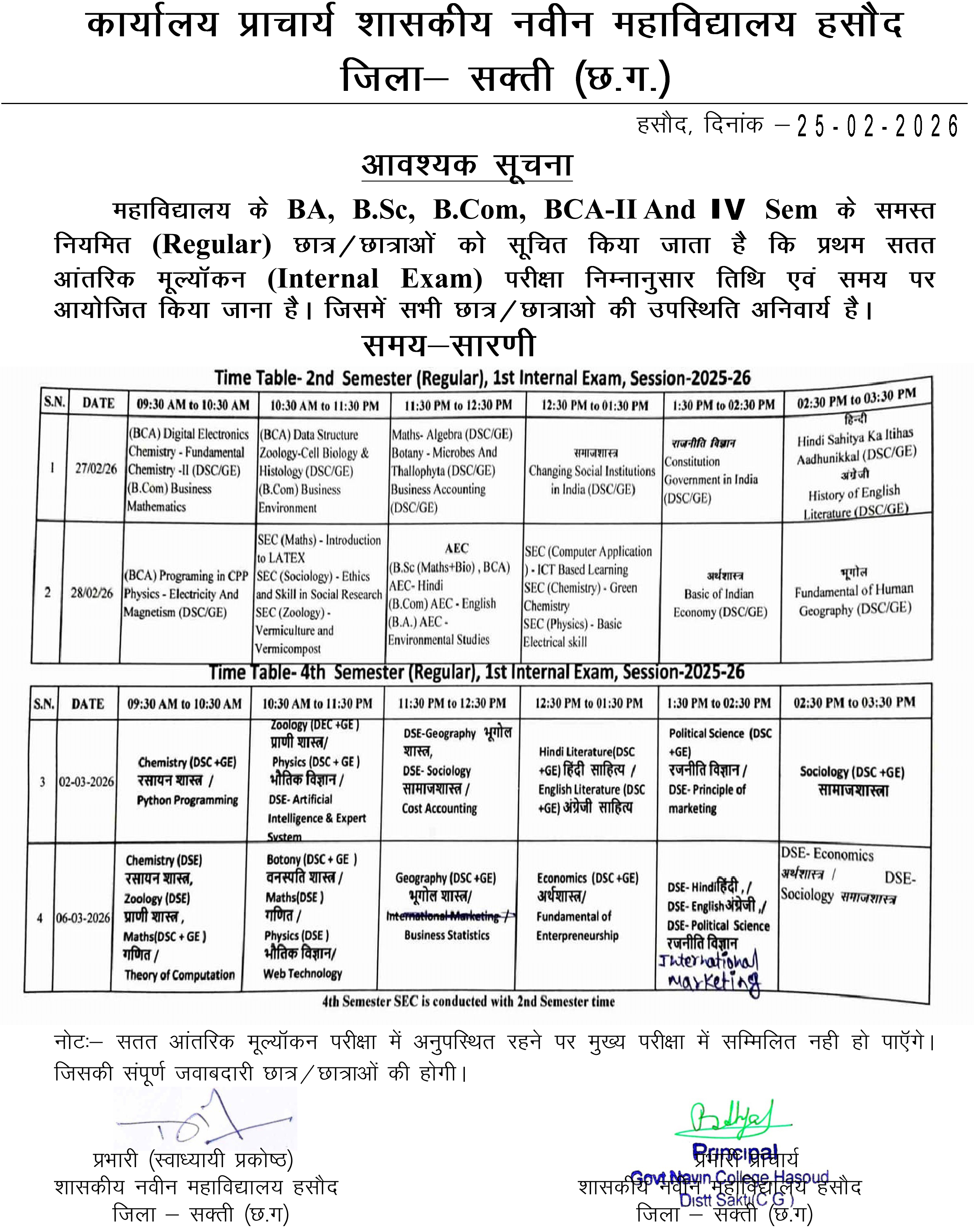 ( प्रभारी प्राचार्य )