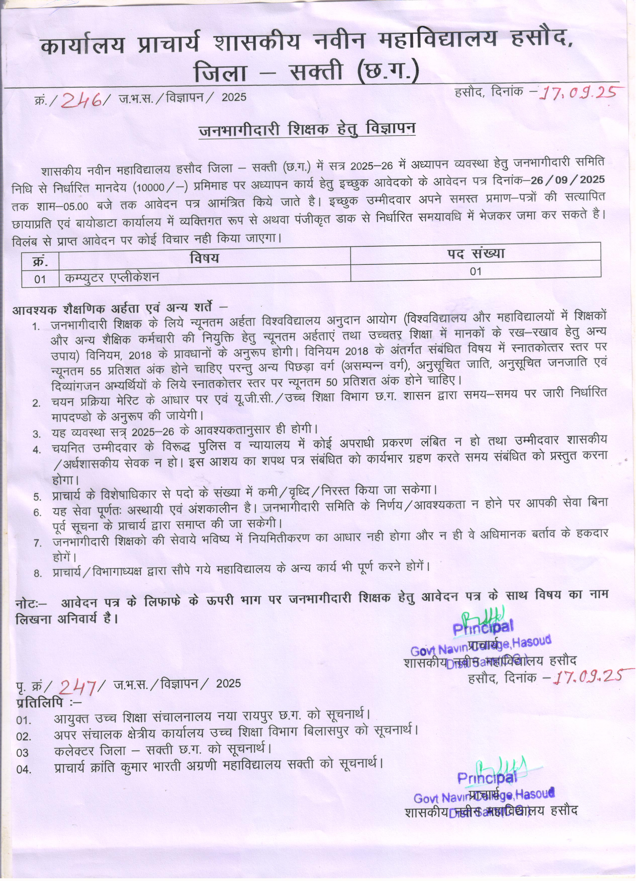 ( प्रभारी प्राचार्य )